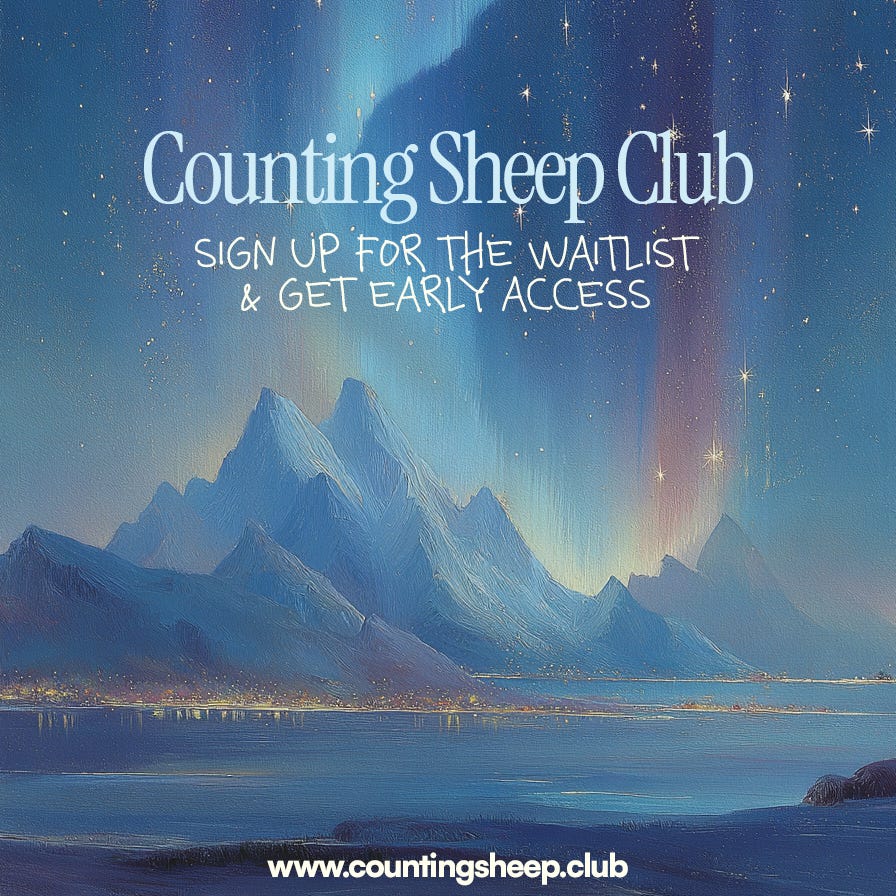 That is where Counting Sheep Club comes in: to act as a gentle companion to your evening. When you want connection but can’t summon the energy. When you want your kid to settle but you’ve got nothing left to give.